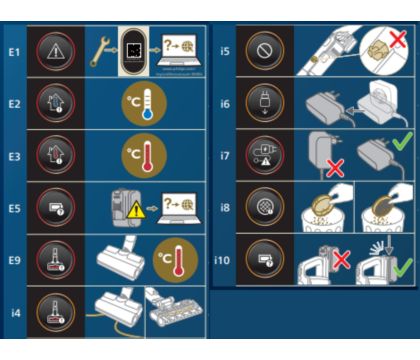 Jei ekrane rodomas klaidos kodas, jo reikšmę rasite informaciniame straipsnyje „8000 serijos „Philips“ belaidis dulkių siurblys rodo klaidos kodą“ arba „7000 serijos „Philips“ belaidis dulkių siurblys rodo klaidos kodą“ arba perskaitę naudotojo vadovą.