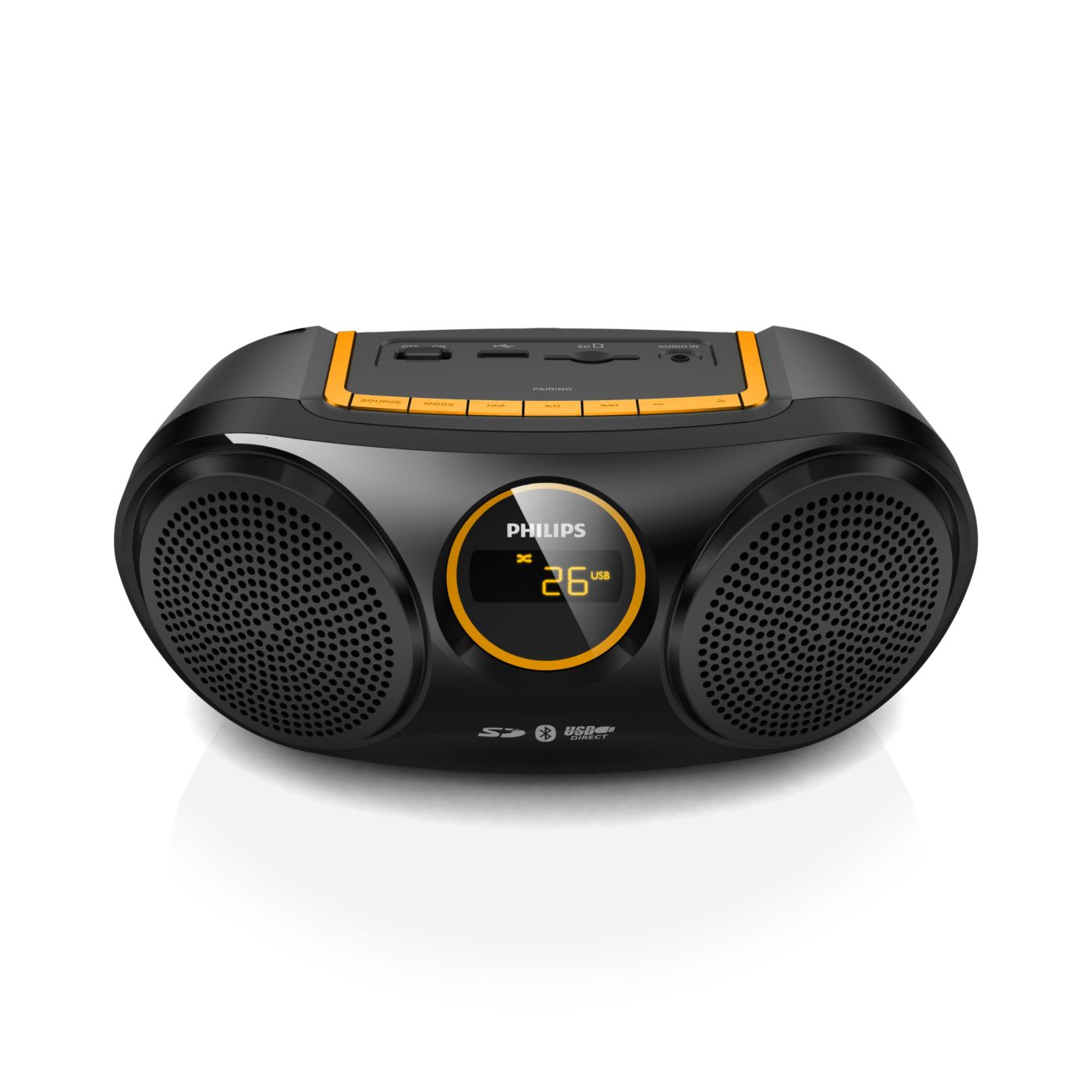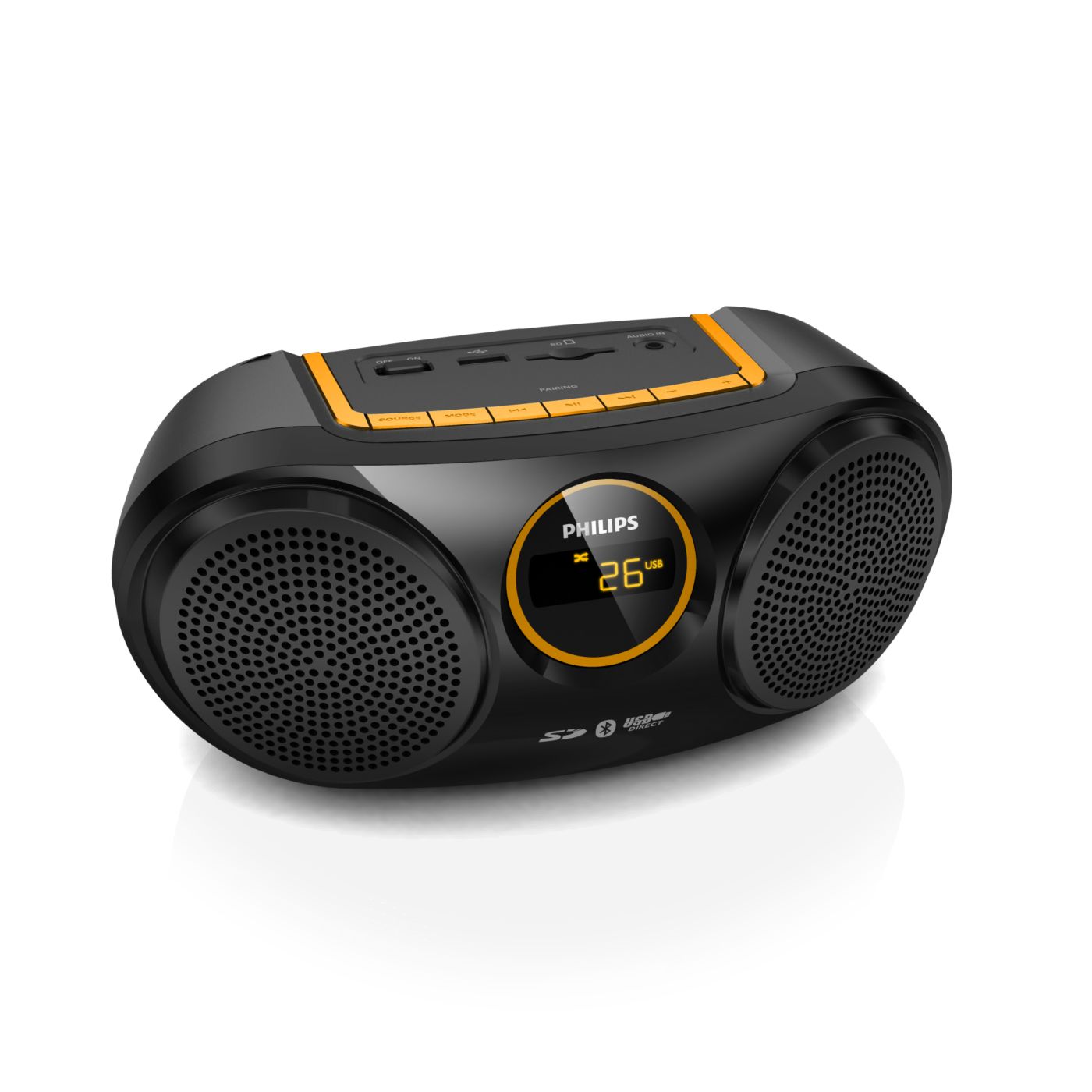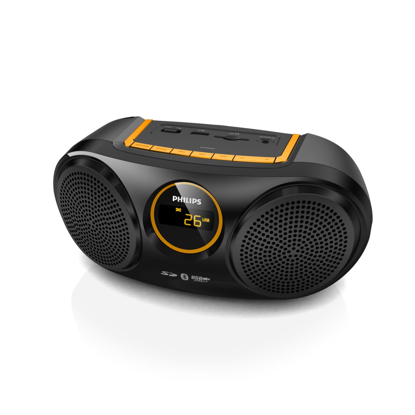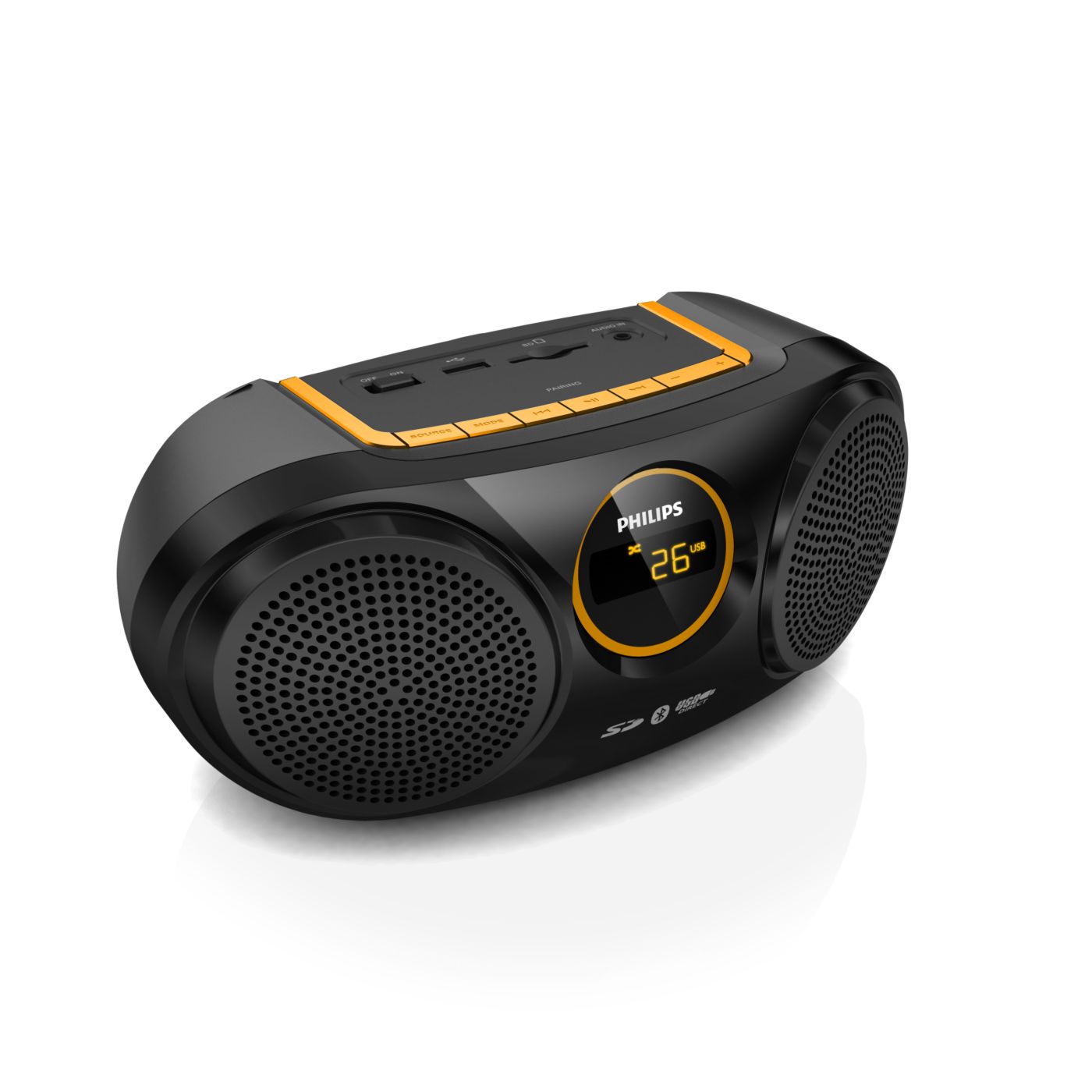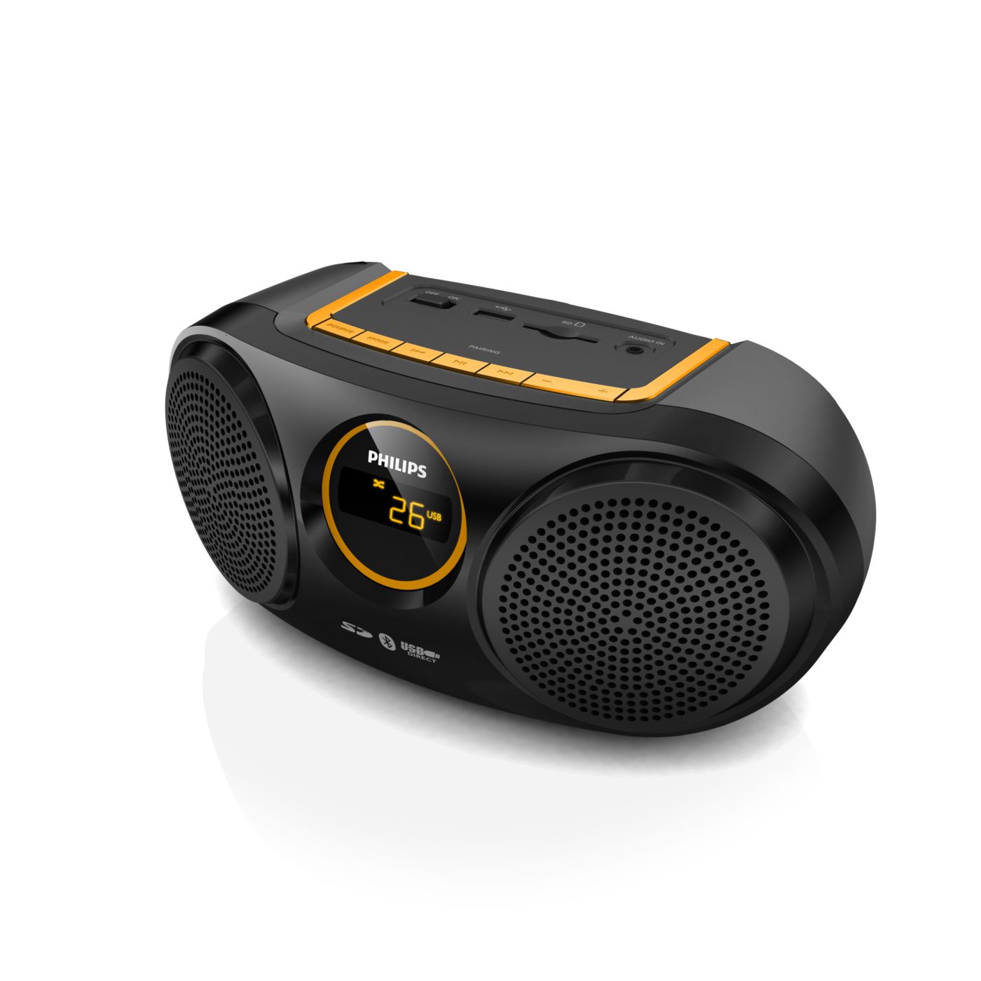 „Bluetooth“ yra trukdžiams atspari ir mažai energijos naudojanti nedidelio atstumo belaidžio ryšio technologija. Naudojant šią technologiją galima lengvai belaidžiu ryšiu prisijungti prie „iPod“ / „iPhone“ / „iPad“ arba kitų „Bluetooth“ įrenginių, tokių kaip išmanieji telefonai, planšetiniai kompiuteriai arba net nešiojamieji kompiuteriai. Todėl per šį garsiakalbį be jokių laidų galite mėgautis mėgstama muzika, vaizdo įrašų arba žaidimų garsu.