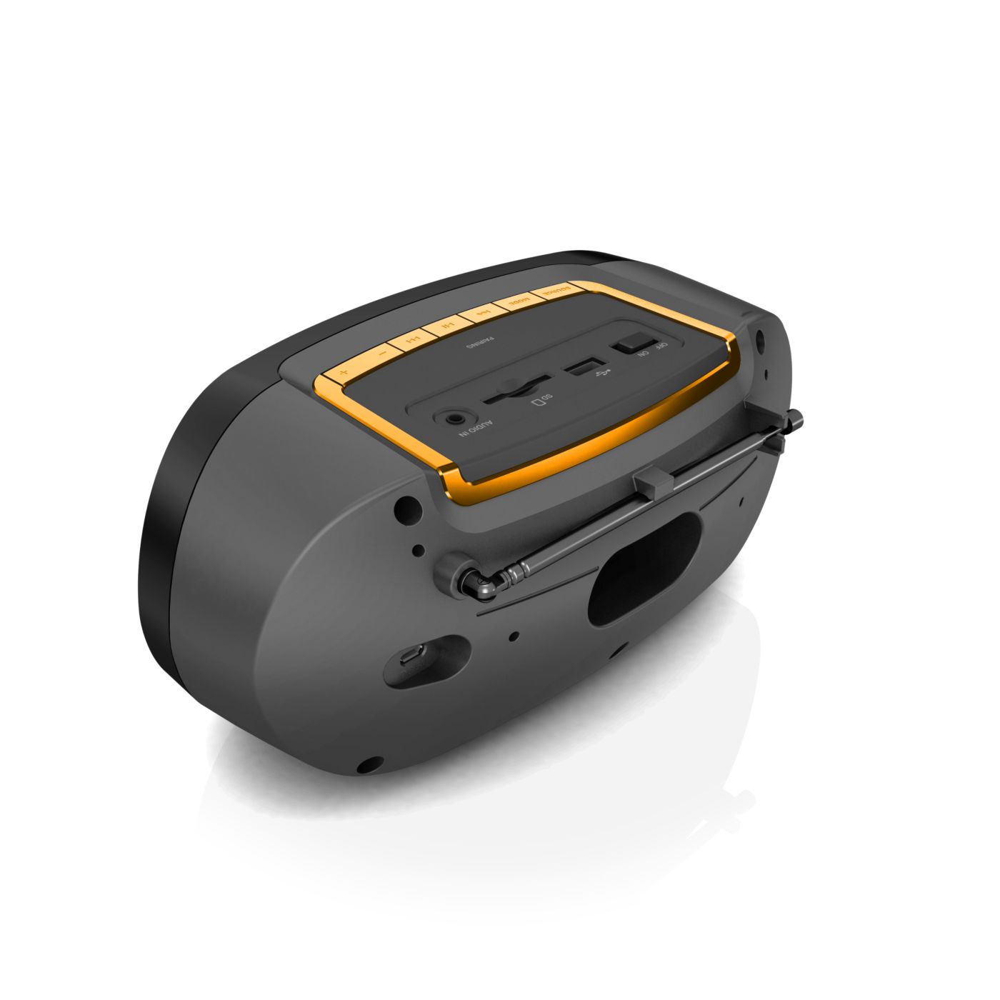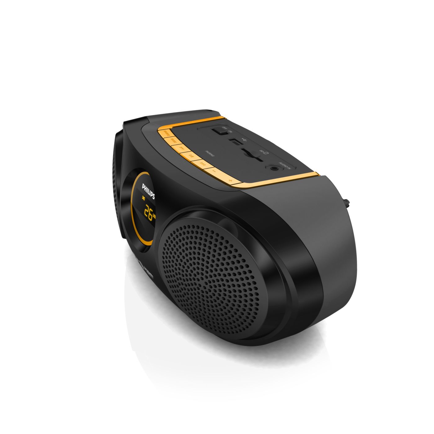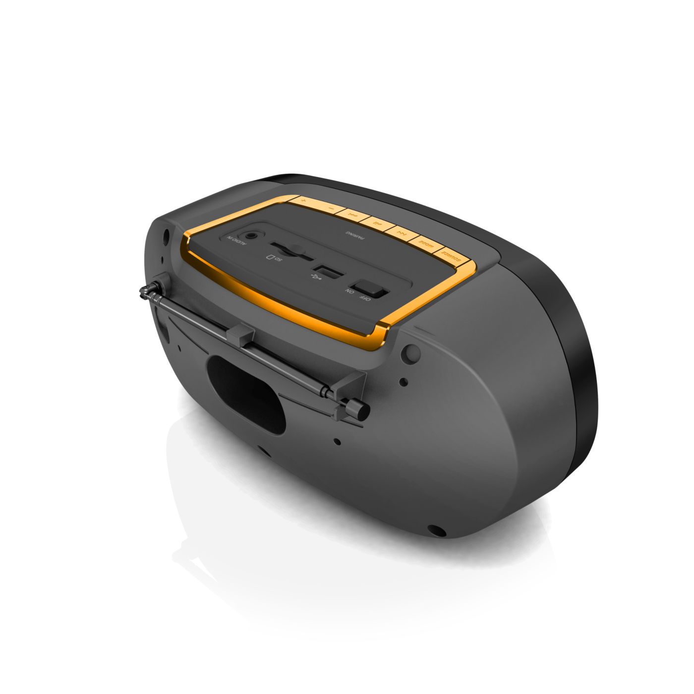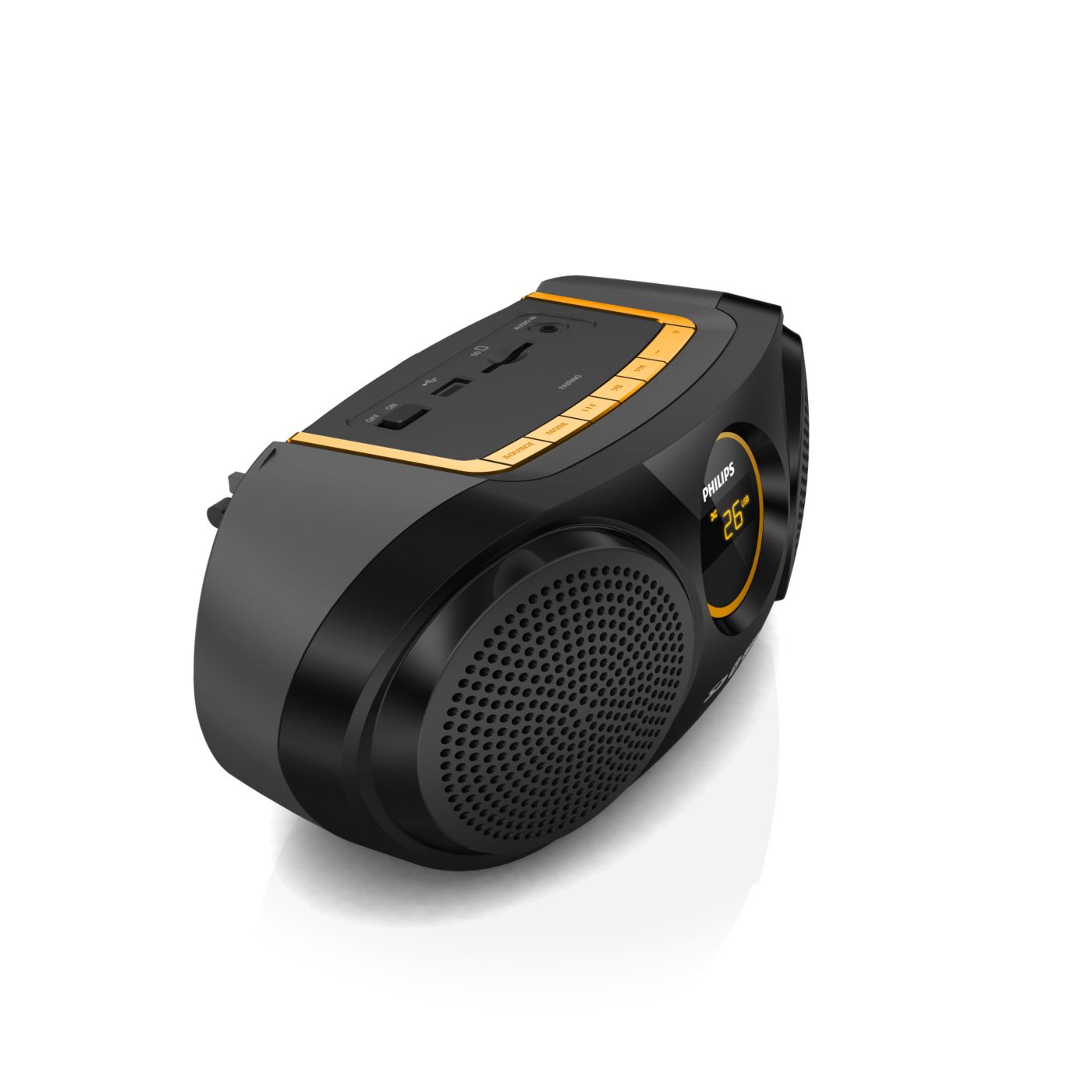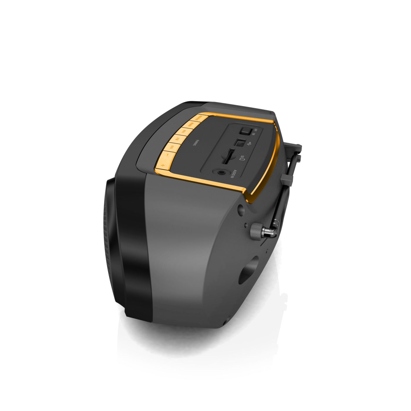 Produkt wizualnie jak i muzycznie super. Dźwięk i głośność wystarczająca. Wbudowany wyświetlacz, akumulator oraz antena. Sterowanie proste i intuicyjne. Brak rączki do przenoszenia.