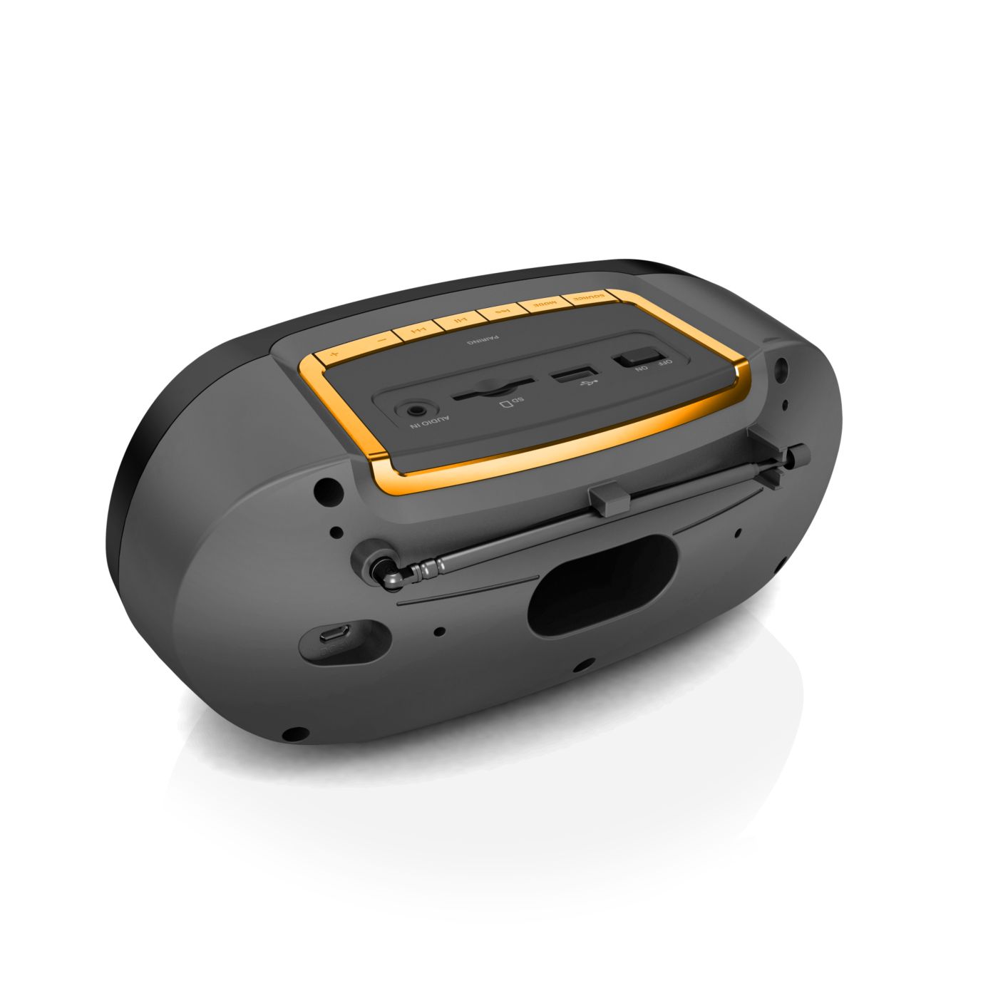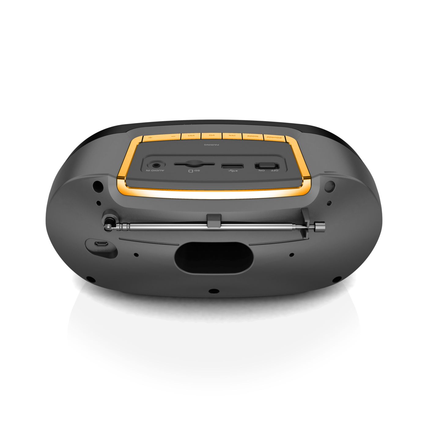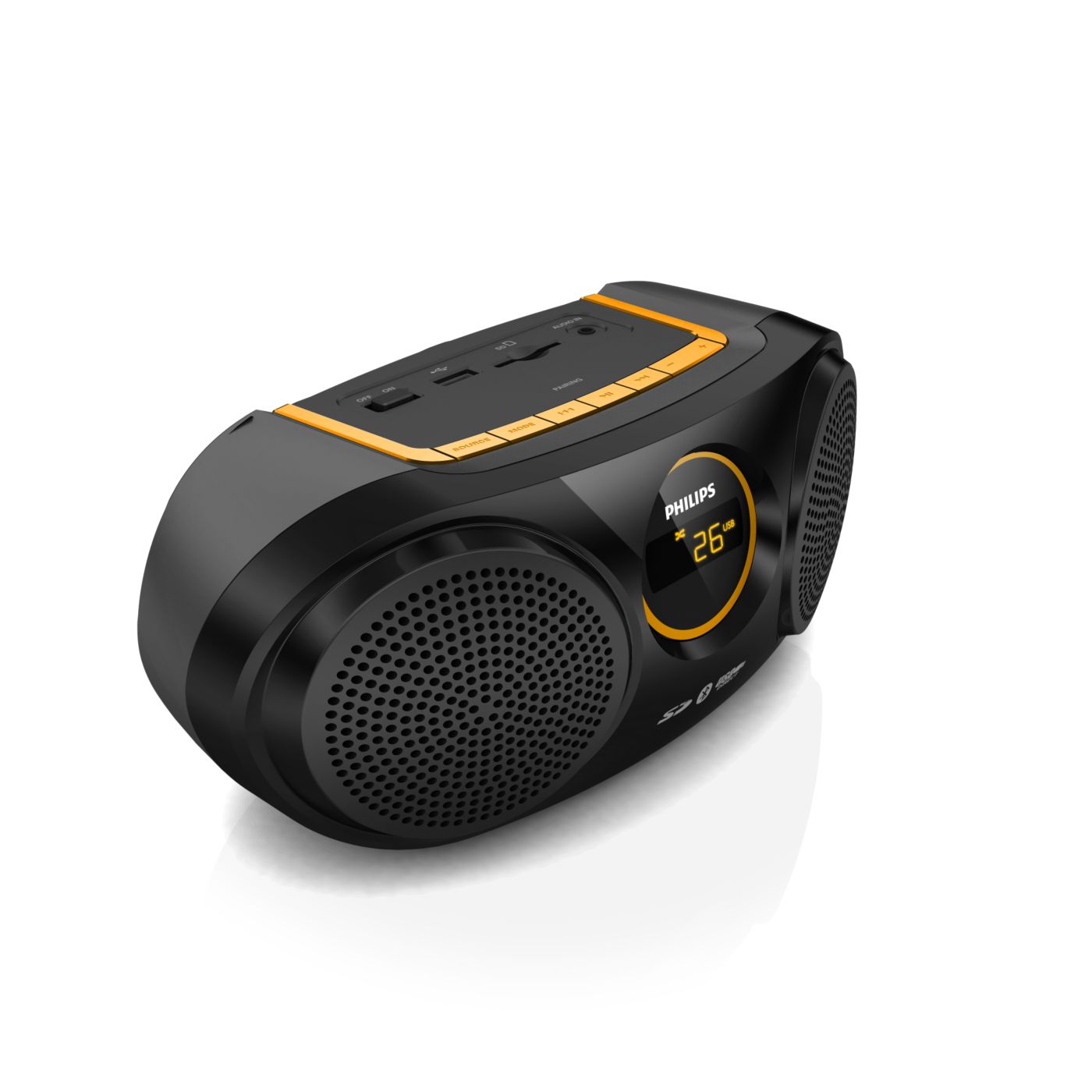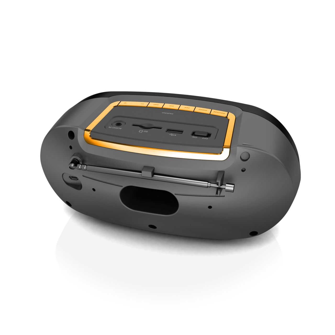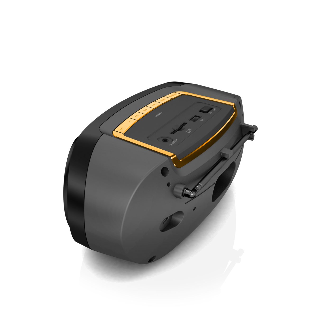 Produkt wizualnie jak i muzycznie super. Dźwięk i głośność wystarczająca. Wbudowany wyświetlacz, akumulator oraz antena. Sterowanie proste i intuicyjne. Brak rączki do przenoszenia.