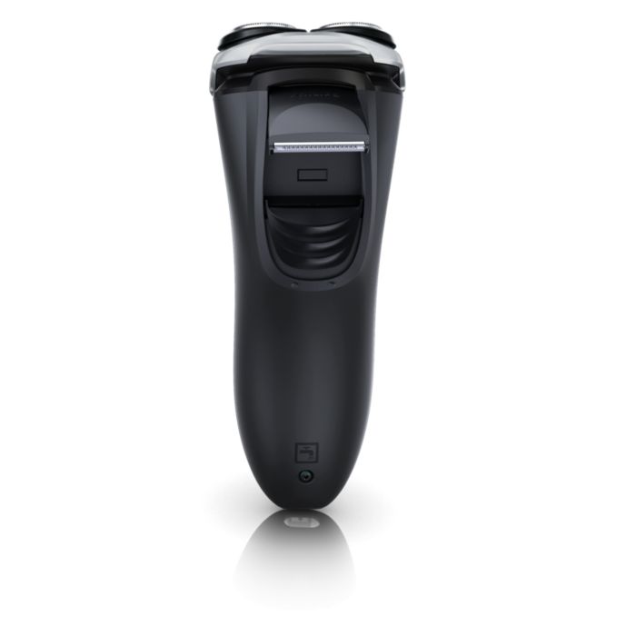 „DualPrecision“ ašmenys patogiai skuta tiek ilgus plaukus, tiek trumpus šerius. 1. Išpjovos nukerpa ilgus plaukus. 2. Skylutės nukerpa šerius.