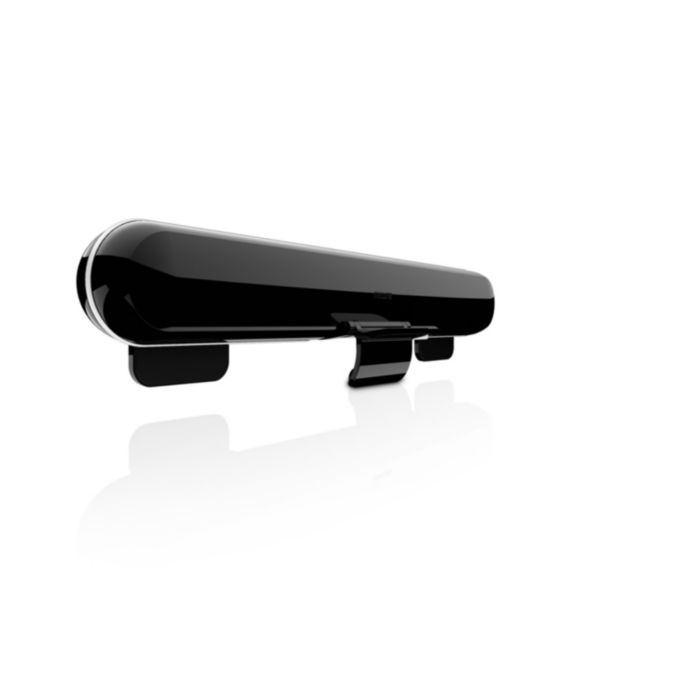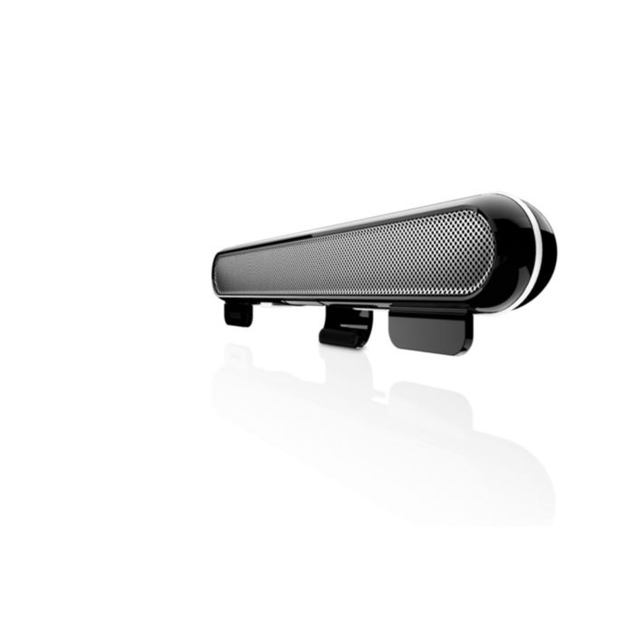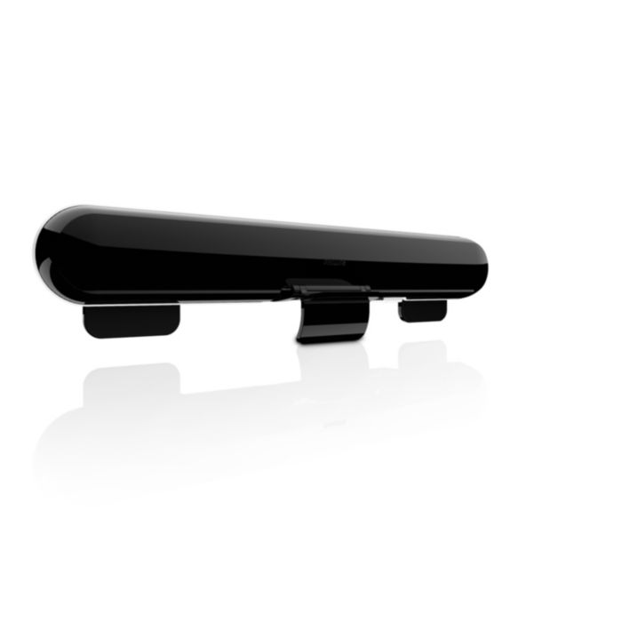 „Soundbar“ galite pritvirtinti prie nešiojamojo kompiuterio ekrano viršaus ir klausytis muzikos kelionės metu BEI tuo pačiu metu sutaupyti vietos. Tiesiog pritvirtinkite jį prie nešiojamojo kompiuterio, prijunkite USB laidą ir mėgaukitės! Baigę klausytis suvyniokite USB laidą į angą aplink „Soundbar“ ir įdėkite jį atgal į krepšelį.