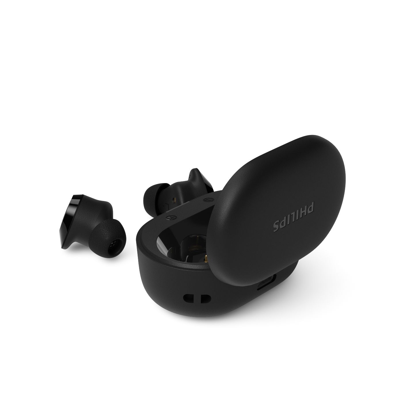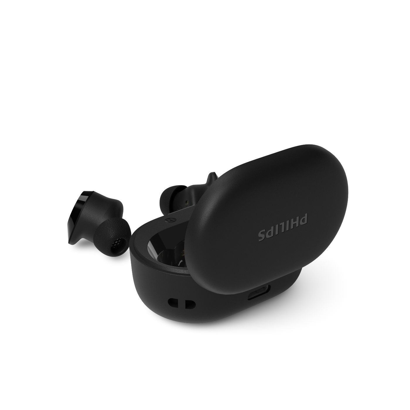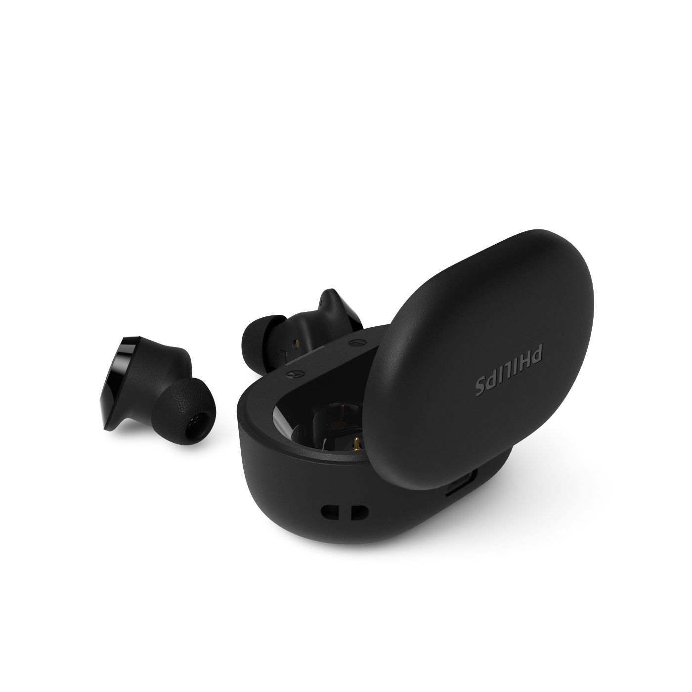 Mažas įkrovimo dėklas lengvai telpa į kišenę, taip pat galite pritvirtinti dirželį prie jam skirtos angos ir pasikabinti dėklą ant krepšio ar diržo kilpos. „Mono“ režimas reiškia, kad galite naudoti vieną ausinę, kol kita įkraunama.